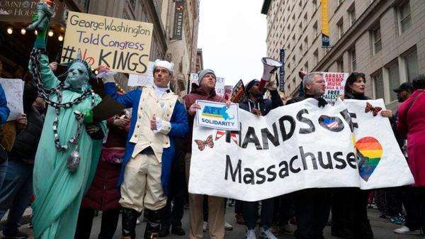 Thousands of protesters from all across New England flooded the Boston Common and City Hall Plaza on Saturday for the “Hands Off!” rally, part of a planned day of action with over 1,000 anti-Trump protests nationwide.